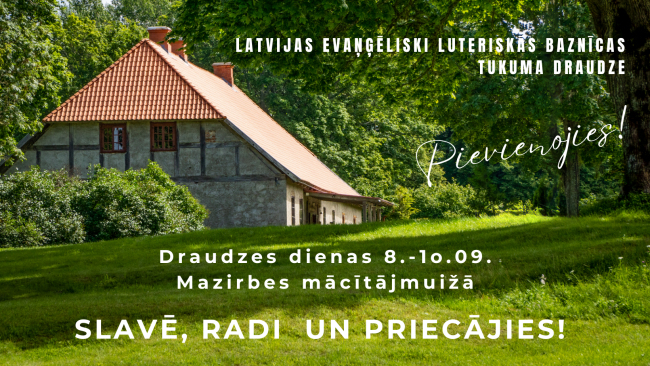 Uz tikšanos lekcijās, diskusijās, kopīgās nodarbībās, nelielā ekskursijā pa tuvāko apkārtni, radošajās darbnīcās un Tezē lūgšanu svētbrīžos! Īpaši aicinām nometnē piedalīties gan agrāk, gan nesen kristītos un iesvētītos draudzes locekļus, kā arī viņu ģimenes locekļus vai draugus, un visi kopā piedzīvosim šīs jaukās draudzes dienas Slīteres rezervāta Mazirbes mācītājmuižā!