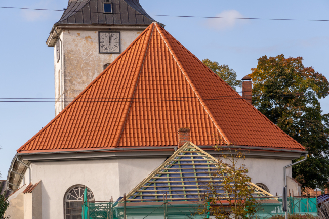 Tukuma baznīcas jumta rekonstrukcija turpinās – septembrī sāksies trešās kārtas darbi
