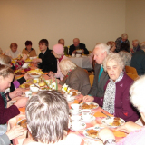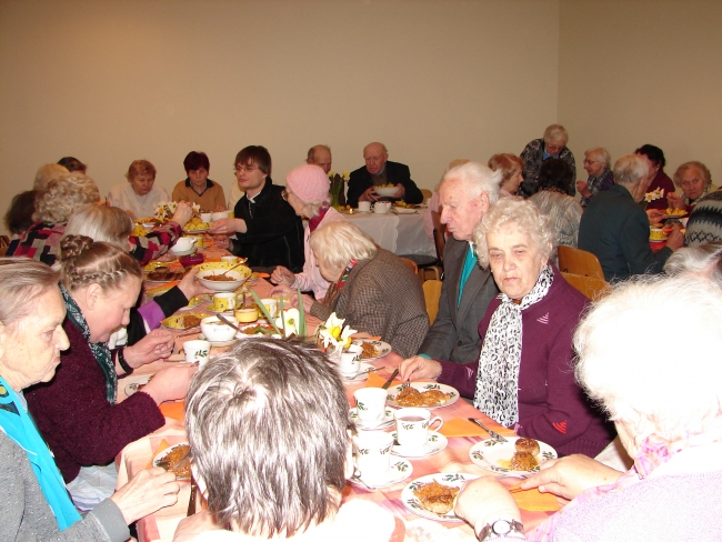 Pēc dievkalpojuma visus baznīcēnus aicināja uz draudzes namu. Pusdienu maltīti palīdzēja sarūpēt Mudītes Neilandes ģimene. Draudzes nama virtuvē čaklās rokas garšīgās pusdienas gatavoja jau no agra rīta.