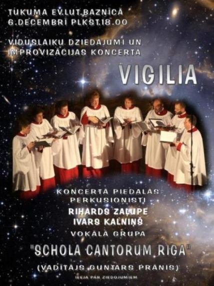 Būsiet mīļi gaidīti sestdien 6.decembrī plkst. 18.00 Tukuma ev.lut. baznīcā koncertā VIGILIA. Ieeja par ziedojumiem.