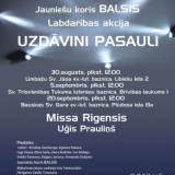 Būsim priecīgi jūs redzēt jauniešu kora „Balsis” koncertos 30.augustā plkst. 12:00 Sv. Jāņa ev.-lut. baznīcā, Limbažos, 5.septembrī plkst. 12:00 Sv. Trīsvienības Tukuma luterāņu baznīcā, 20.septembrī plkst. 12:00 Sv. Gara baznīcā, Bauskā.